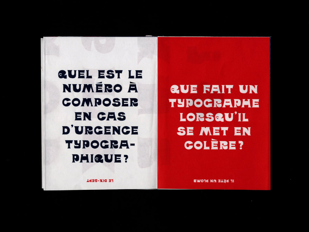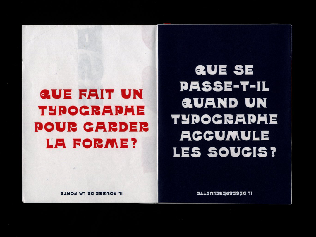 Fonte créée en une semaine à partir d’un lettrage d’Hardy Dudley, en collaboration avec Léa Coeyman lors d’un workshop supervisé par Anton Moglia à l’ésaat de Roubaix. Le specimen prend la forme d’un catalogue de jeux de mots typographiques.