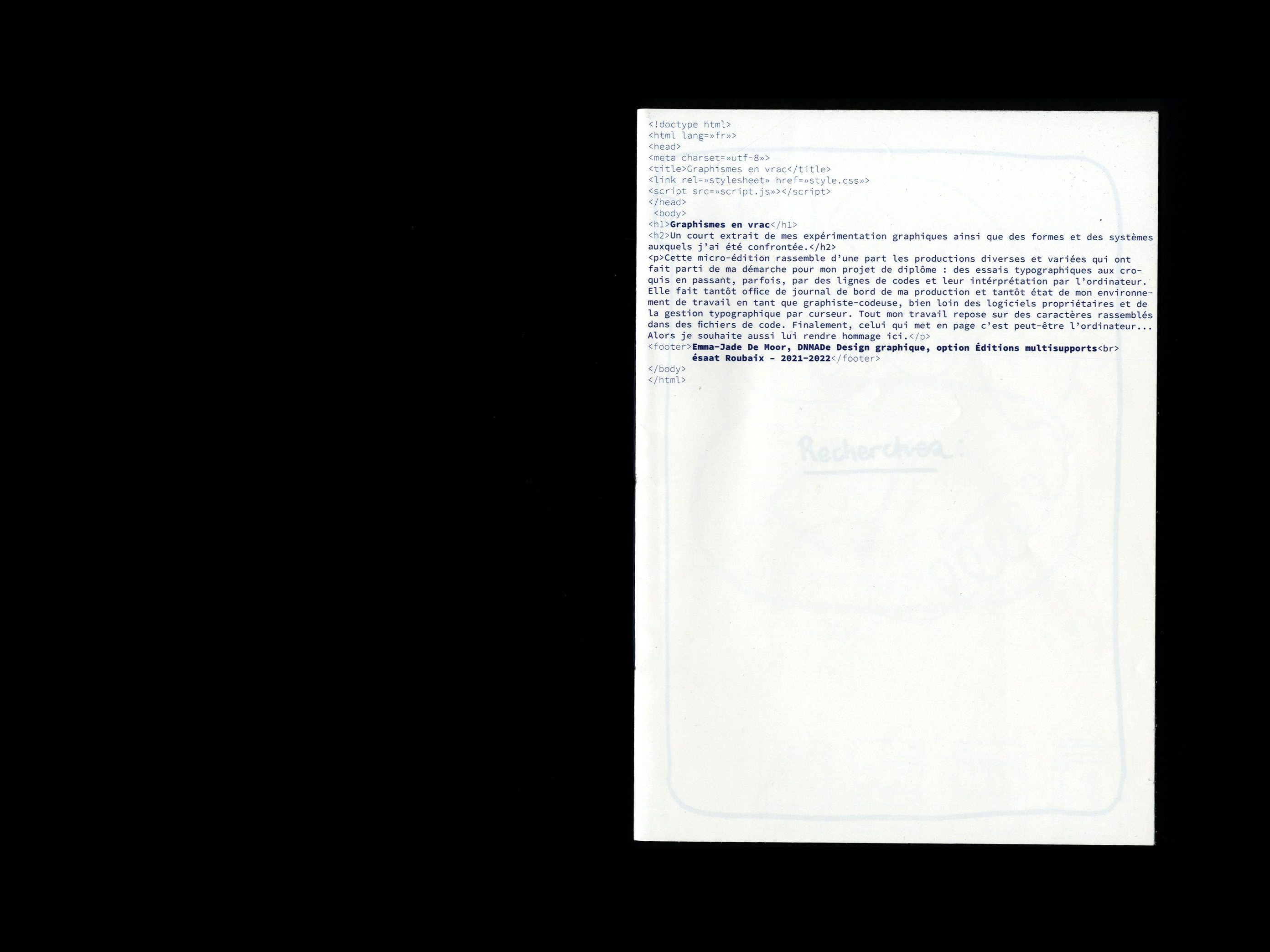 Note d’intention du projet de diplôme de DSAA, en cours à ce jour. Co-rédigé et mis en page avec Inès El Kerraz.